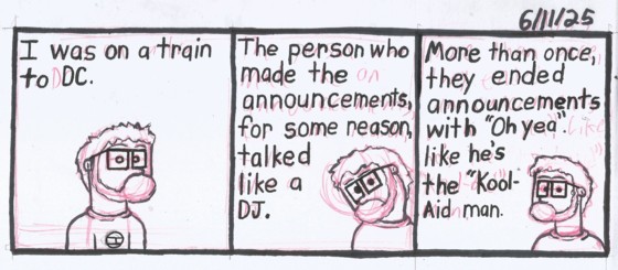 New comic,"Train Announcer", is up. Click the comic to see the final.