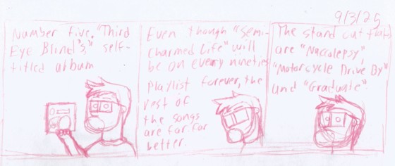 New comic,"Five:Third Eye Blind-Self-Titled", is up. Click the comic to see the final.